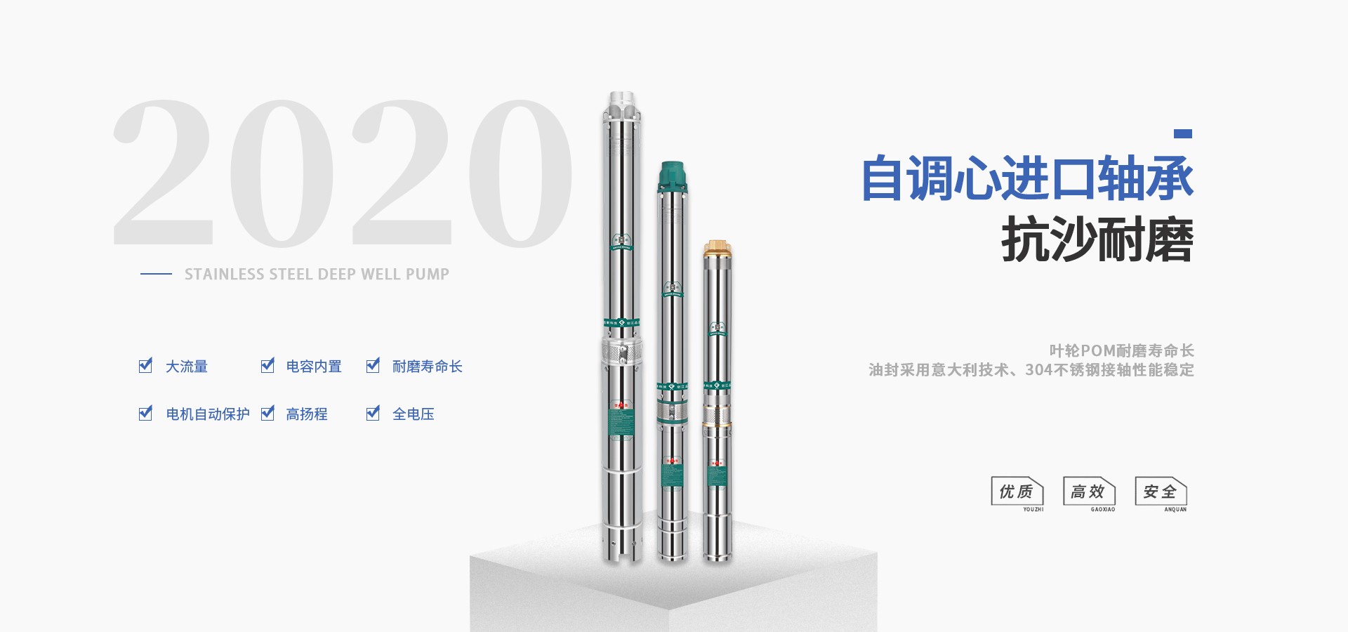 公司始終站在深井泵行業的前端位置,科研力量、產品和設備技術水平均達到國內優(yōu)質水平,公司始終堅持走科技興企、自主創(chuàng)新的企業發(fā)展之路,產品不斷推陳出新,可廣泛應用于農業灌溉、生活用水、循環(huán)供暖、污水處理、市政供水、石油化工、冶金礦山等領域。